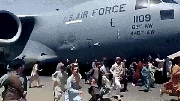 ▲ 2021年,“他们一无所有,但他们获得了自由”:数千名阿富汗人涌入喀布尔卡尔扎伊国际机场跑道,试图追逐并登上正要起飞的美军C-17运输机。