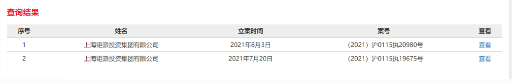 上述两件案件的案号为(2021)沪115执20980号和(2021)沪115执19675号,执行标的总计4743589.04元,执行法院均为上海市浦东新区人民法院。