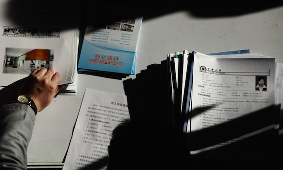 4月末,2016年应届毕业生招聘渐入尾声。比起大型招聘会,这场招聘会规模显得小了不少。80家公司的招聘窗位依序隔出的通道中,摩肩接踵的应聘者似乎都带着背水一战的决心。不论男女,显然都经过了一番精心打扮,以使自己更富职场气质。在与招聘方的礼貌克制交谈之中,应聘者们仍有一些相似的复杂情感:急切、倦怠,期待中掺杂着焦虑。