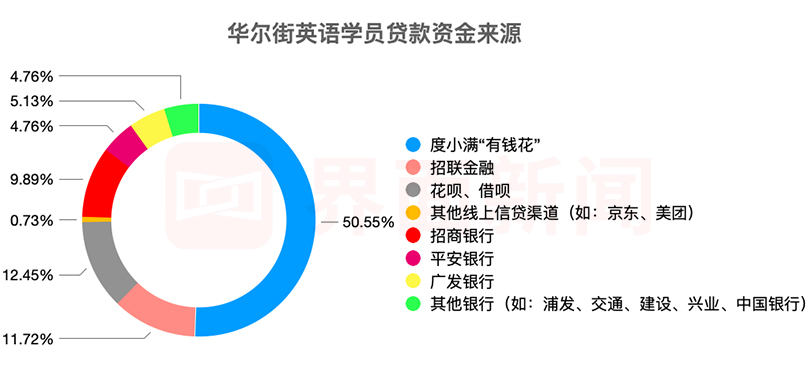 对于是否与销售强推的金融机构存在合作关系,一位在华尔街英语工作6年的销售顾问向界面新闻证实称,度小满与招联金融的确与华尔街存在合作关系,其合作方式体现为,前者为华尔街英语客户提供专门的教育贷产品,在贷款手续费上予以减免,华尔街的销售人员也将优先推荐。