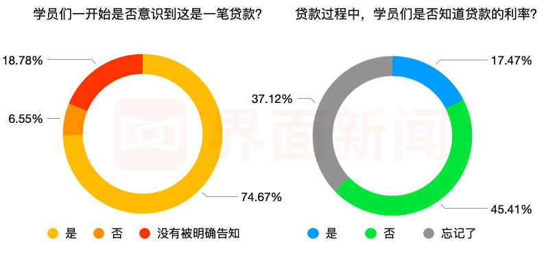 问卷调查还显示,在229名学员中,有约25%的学员没有明确意识到自己在办理贷款,并且仅约17%的学员知道贷款利率。