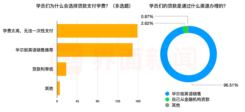 界面新闻也通过多个渠道向华尔街英语学员发放调查问卷,问卷内容涉及贷款原因、金额、期限、利率和具体产品等,在不到24个小时内回收到245份问卷,其中贷款学员229名。