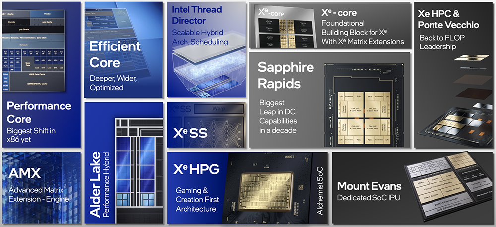 总体来看,英特尔在此次架构日活动中推出两大x86 CPU内核、两款独立GPU、两大数据中心SoC、IPU新品和首款客户端多核性能混合架构,并展示了AMX、XeSS、硬件线程调度器等多项融入产品特性的技术创新。
