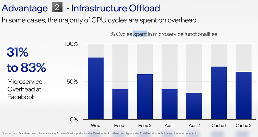 最后,围绕全新基础设施处理器(IPU),英特尔展示了其首款专用ASIC IPU Mount Evans和基于FPGA的IPU参考平台Oak Springs Canyon。