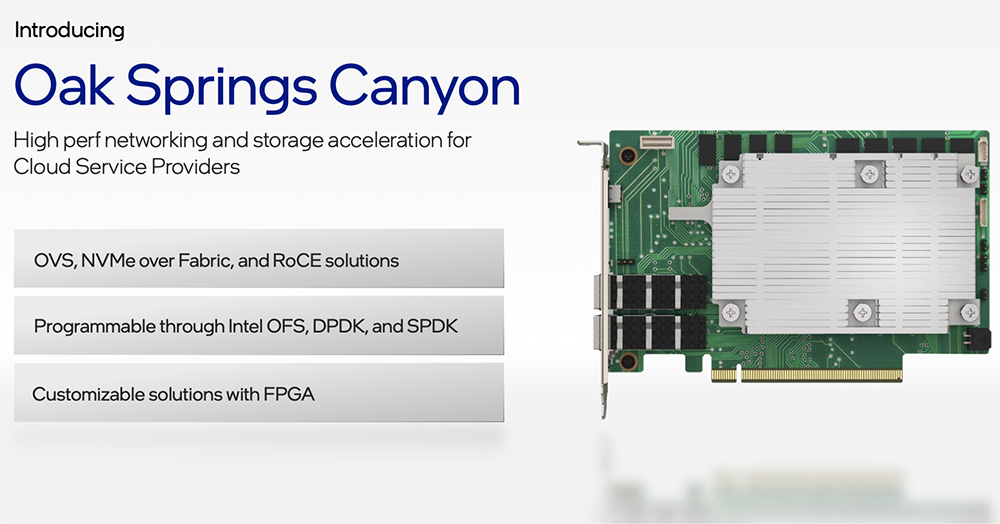 Oak Springs Canyon是一个IPU参考平台,基于英特尔至强D处理器和英特尔Agilex FPGA构建: