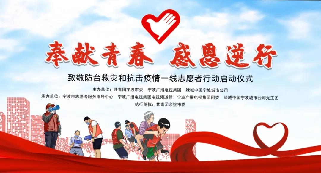 在此次抗台救灾、抗击疫情的过程中,这些志愿者们贡献了巨大的能量,他们协助城市恢复秩序,帮助民众脱离危险,为致敬这群志愿者们,2021年8月19日,由共青团宁波市委、宁波广播电视集团、绿城中国宁波城市公司主办发起的“奉献青春·感恩逆行”致敬防台救灾、抗击疫情一线志愿者行动启动仪式在余姚正式开启。