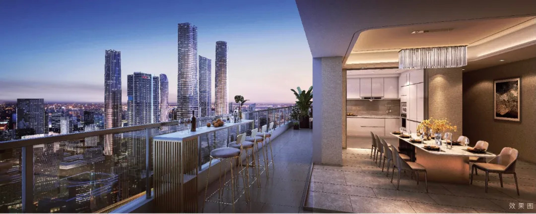 更值得一提的是它的顶复,也是大都会项目的收官之作,堪称“天际藏品”:它以大尺度、大空间、大格局为底色,打造开放式的客厅、南向休闲阳台与多功能休息室和风景露台相连等带来更加开阔的空间视野,使整个家庭空间几乎都沐浴在CBD天际下。