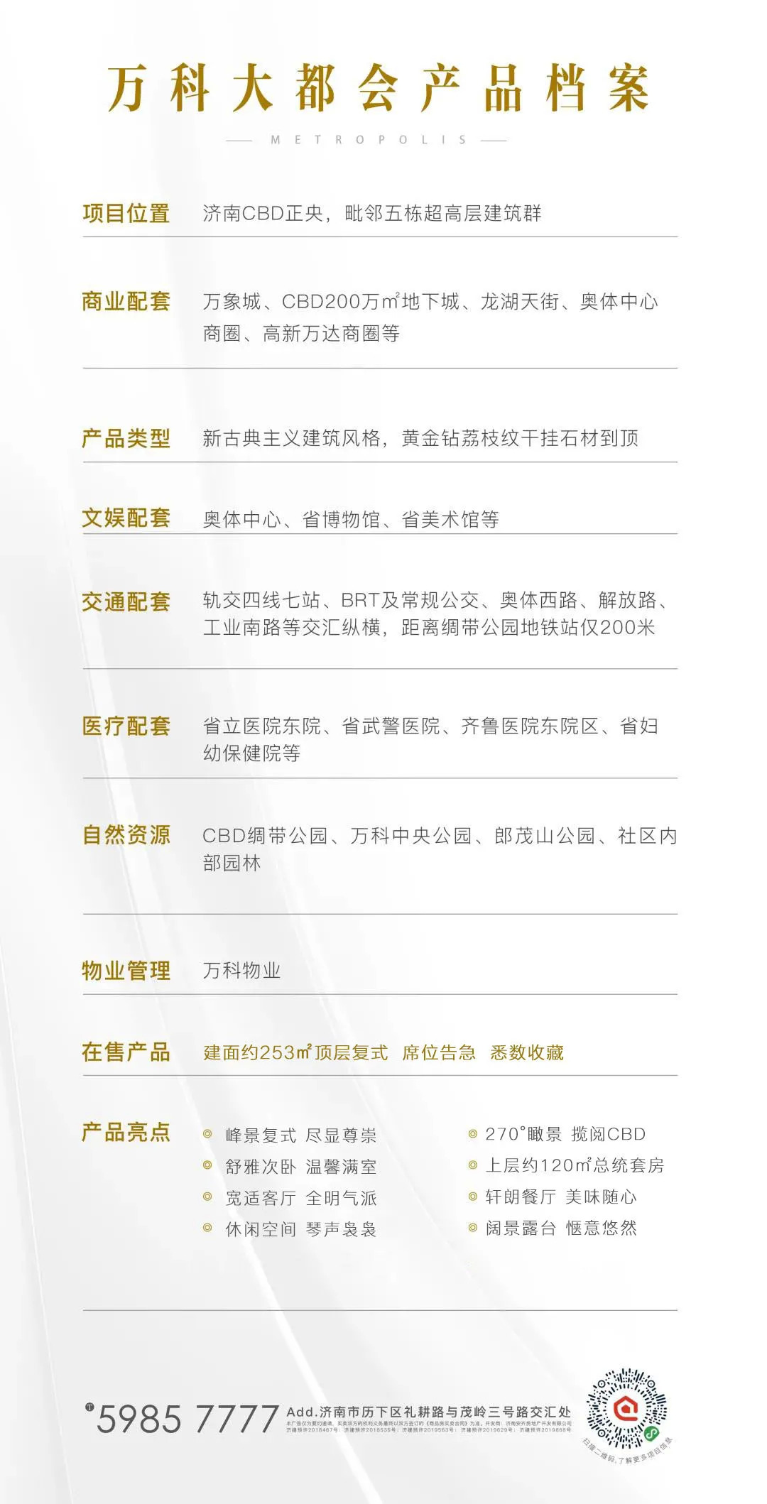 地理上,它立足济南CBD的几何中心,占据CBD正央之地;配套上,它坐拥CBD内几乎倾全市之力打造的济南各类最优质的资源和生活配套;景观上,它毗邻五指山,“泉、城、山、河、湖”五栋超高地标建筑近在咫尺、绸带公园在侧,几乎处于CBD最优越的城市风光的合围之下。