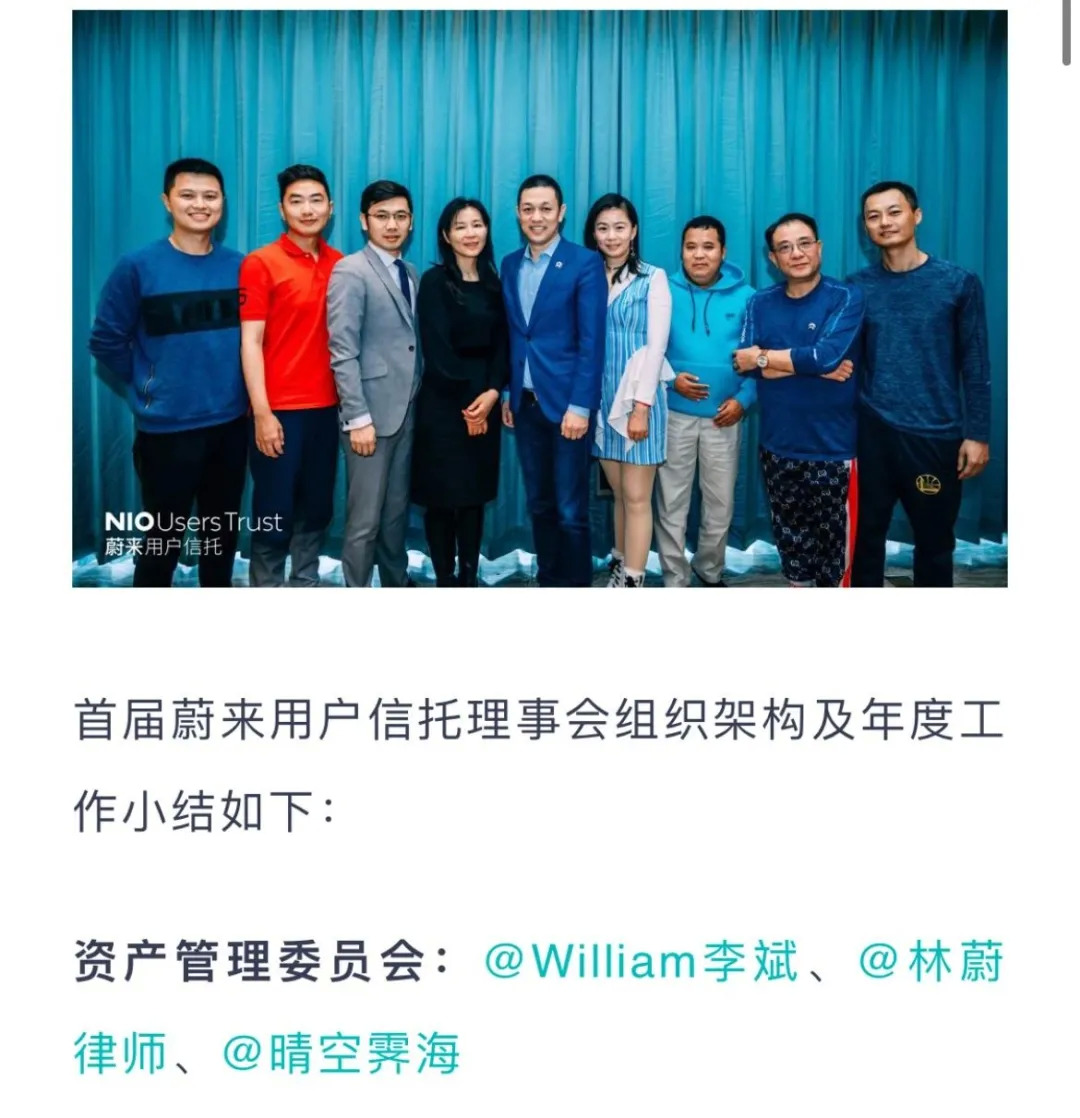 林是一位知识产权领域的律师,但他引发不少车主质疑的是身份是蔚来用户信托的9位理事之一。