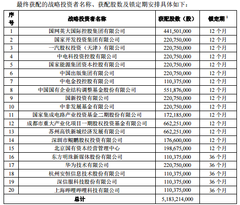 中国电信透露,战略投资者的选择在充分考虑投资者资质以及和发行人长期战略合作关系等因素后综合确定,主要包括具有长期投资意愿的国有企业或其下属企业、国家级投资基金、与发行人具备战略合作关系或长期合作愿景且有意愿长期持股的投资者。