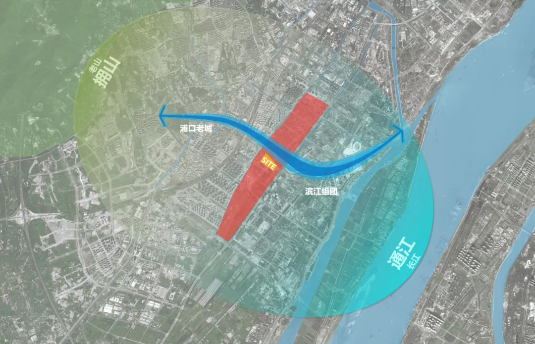 浦口文化中心选址位于浦口城南片区核心区城南河南岸,拥山通江,西接浦口老城,东临滨江组团,是历史与未来的交汇处。