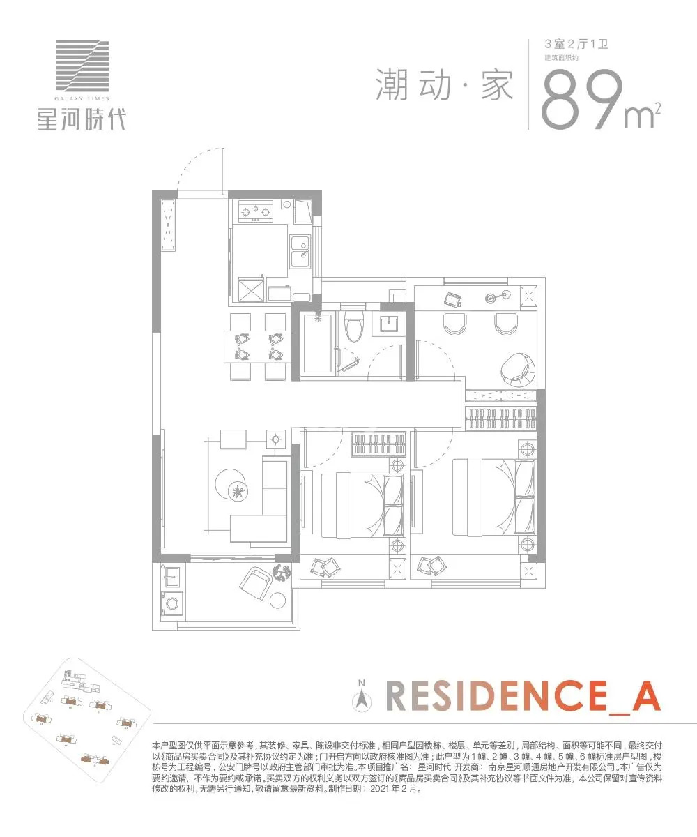 89㎡三房两厅一卫:三开间朝南,三卧室带飘窗,总价相对较低,功能齐全,比较适合。