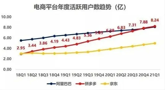2020年,黄峥身价一度超过马云,随后一年,拼多多以7.88亿的年活跃用户正式赶超阿里。
