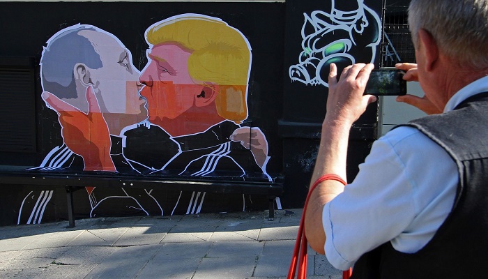 美国共和党总统候选人特朗普与俄罗斯总统普京激情接吻的壁画近日出现在立陶宛的社交媒体上,并引发国外媒体的广泛关注。