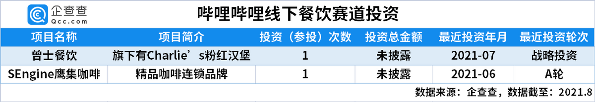 2021年6月,B站投资了SEngine鹰集咖啡,鹰集自有产业链闭环,在包装咖啡产品方面具备自身优势;一个月后,B站入股上海曾士餐饮,成为该公司第二大股东(持股比例14.9%)。这些项目属于上海网红项目,年轻用户往往喜欢打卡网红产品。