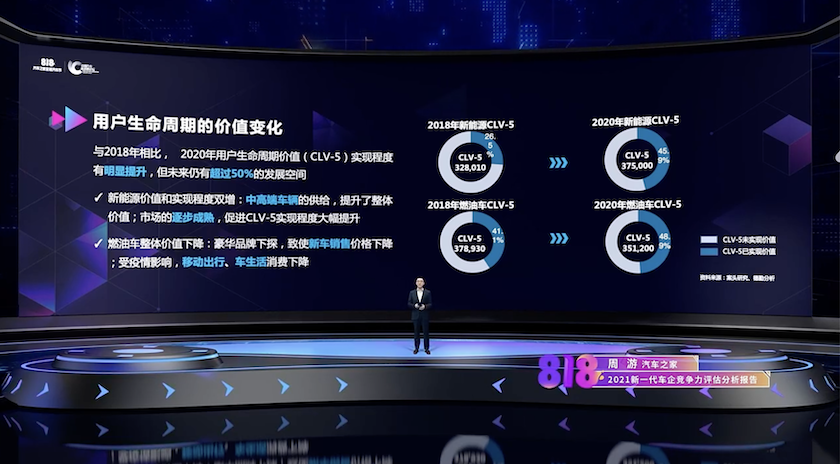 同时,汽车市场正由产品驱动转向用户驱动,关注点也由仅关注车辆价值,开始向关注车主的全生命周期价值转变——有数据显示,与2018年相比,2020年用户生命周期价值有显著的增长,而且未来依旧是很大的增长潜力。
