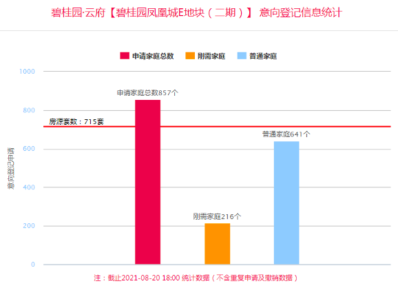 8月20日,千亩神盘碧桂园·凤凰城收官之作——碧桂园·云府正在进行线上登记。从登记数据来看,共715套房源,上线登记仅5小时,即突破房源数,上线第一天800多组登记,全线飘红!