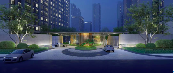通常,我们看一个小区什么档次,第一眼以建筑立面来判断。碧桂园·云府采用现代简约立面,类玻璃幕墙设计,是比较高端的公建化外立面。颜色搭配符合现代审美:屋顶深蓝灰色,建筑主体中灰色与米黄色石漆相搭,并配以锌钢组合栏杆加格栅。立面调性颇高,第一印象“加分”。