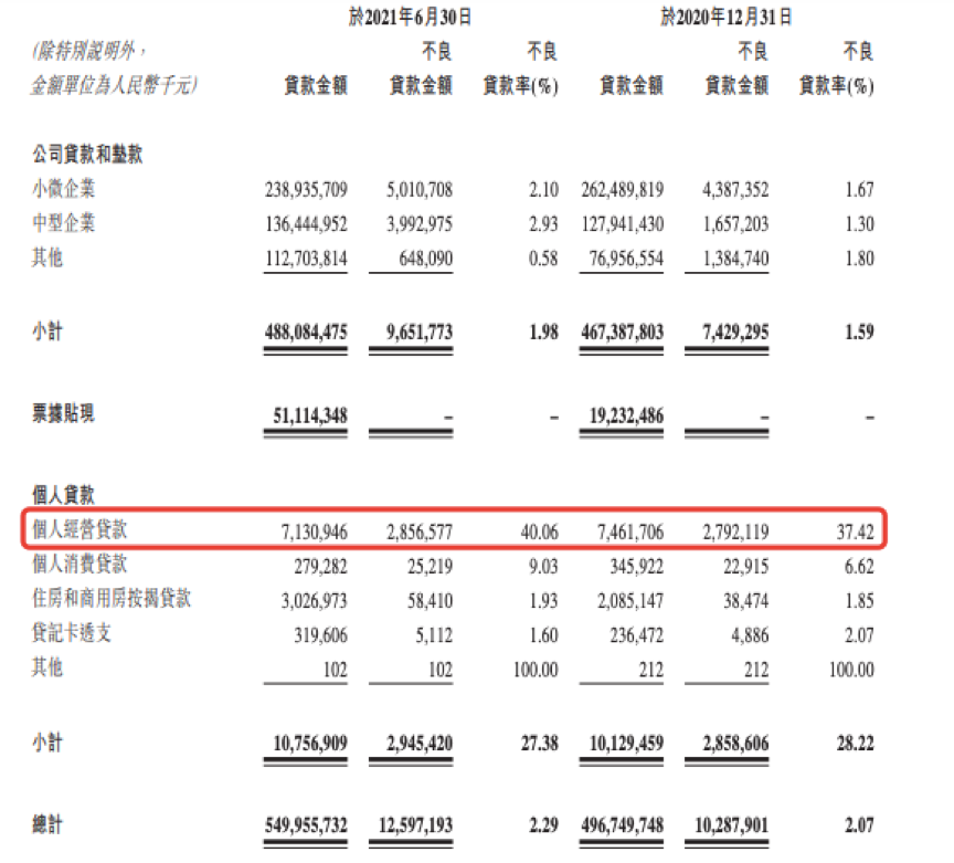 从财报披露数据分析,锦州银行个人贷款不良率较高主要由于个人经营贷款不良率较高所致。截至2021年上半年,该行个人经营贷款不良贷款金额为28.57亿元,不良率为40.06%,较上年末增长2.64个百分点。
