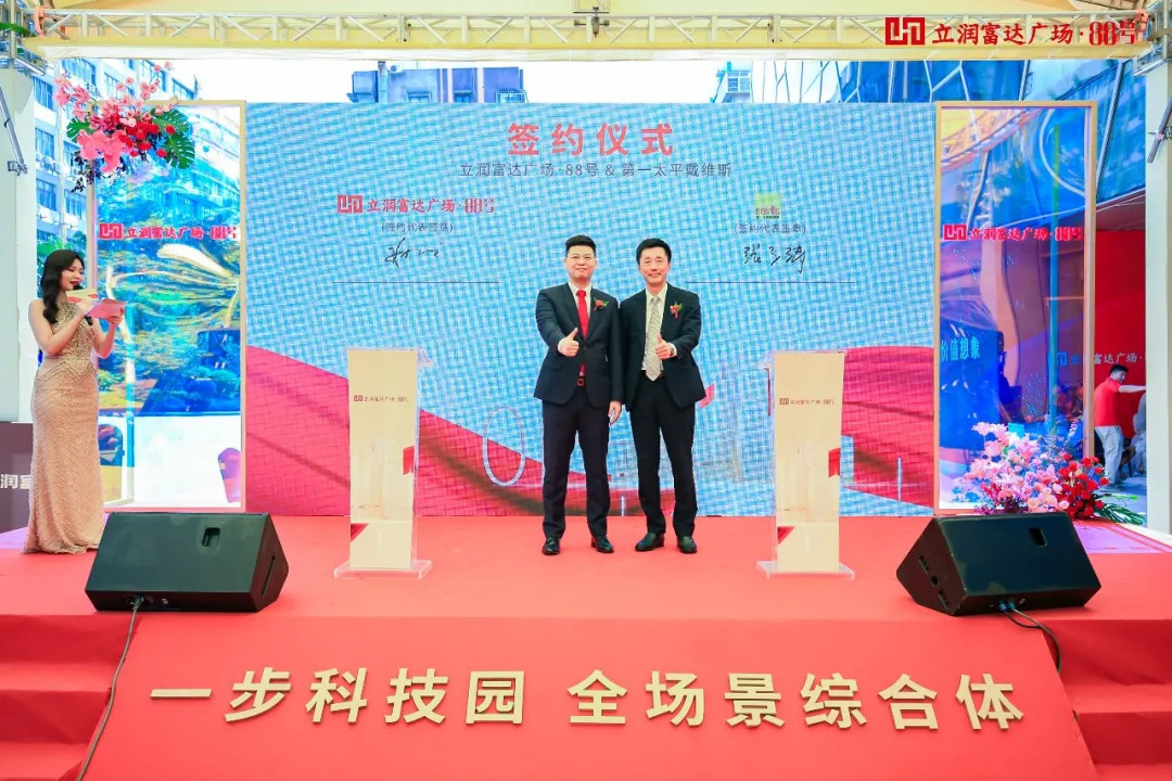 巨头联袂,共建美好。立润富达广场·88号携手世界物业五大行之一的第一太平戴维斯为智慧领潮者带来尊享24小时管家、礼宾等贴心服务。在现场来宾们热烈的掌声中,第一太平戴维斯领导上台发表致辞,为大家详细讲述第一太平戴维斯的服务理念,定制“十全十美”私享服务,给智慧领潮者带来国际高标准的英式白金管家服务。在众位来宾的见证下与第一太平戴维斯的签约仪式盛大举行。