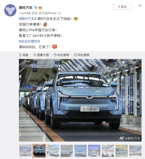 8月21日,哪吒汽车通过其官方微博宣布,第6万台哪吒汽车正式下线。