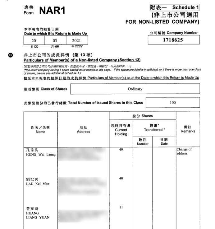 里程培训有限公司的周年报显示,其业务性质仅一项:提供培训(trainning)服务。截至2020年,公司股东为孔伟良、刘杞民、黄亮远,持股份额分别为49%、40%和11%。