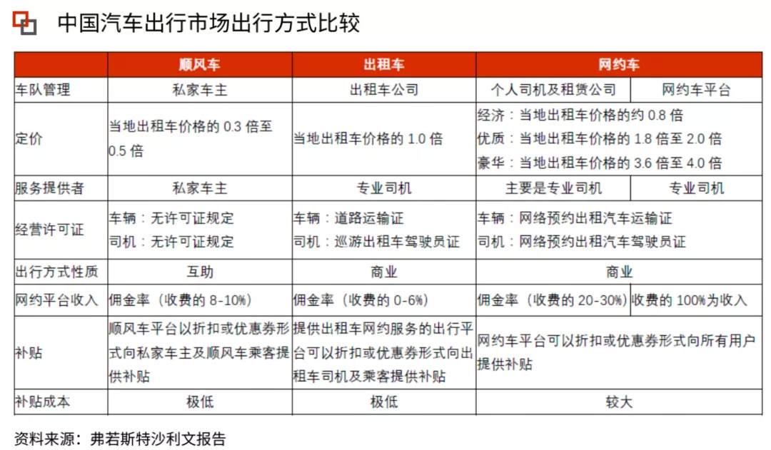 和网约车不同,顺风车不属于运营类车辆,不需要像网约车模式一样负担车队管理成本,也没有经营许可证照的要求。