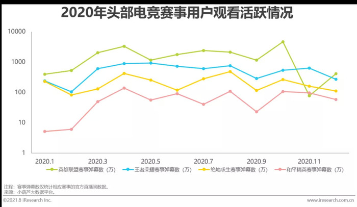 相较于职业体育赛事较长的休赛期,职业电竞赛事几乎做到了全年的赛事覆盖及热度保持。以英雄联盟官方赛事为例,赛事在1-3月和5-6月的LPL春季赛常规赛及夏季赛常规赛阶段保持上升态势,在4月和7月的季后赛阶段达到小高峰,最终在全球总决赛阶段引发收视热潮。电竞赛事关注度的持续提升,也助推了赛事版权价格的走高及授权模式的完善:哔哩哔哩3年8亿获得英雄联盟全球总决赛中国地区独家直播版权;虎牙公司与腾竞体育在2021年4月达成5年20.13亿元的英雄联盟职业联赛相关版权合作,从这些事件可以看出版权授权交易呈现出独家化、打包化和长期化的特征。