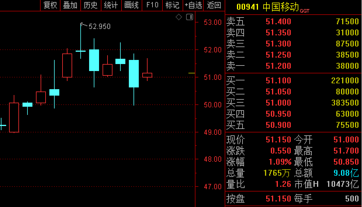 相比之下,中国移动(00941.HK)在8月23日上午要和颜悦色得多,盘中最多涨了超2%。