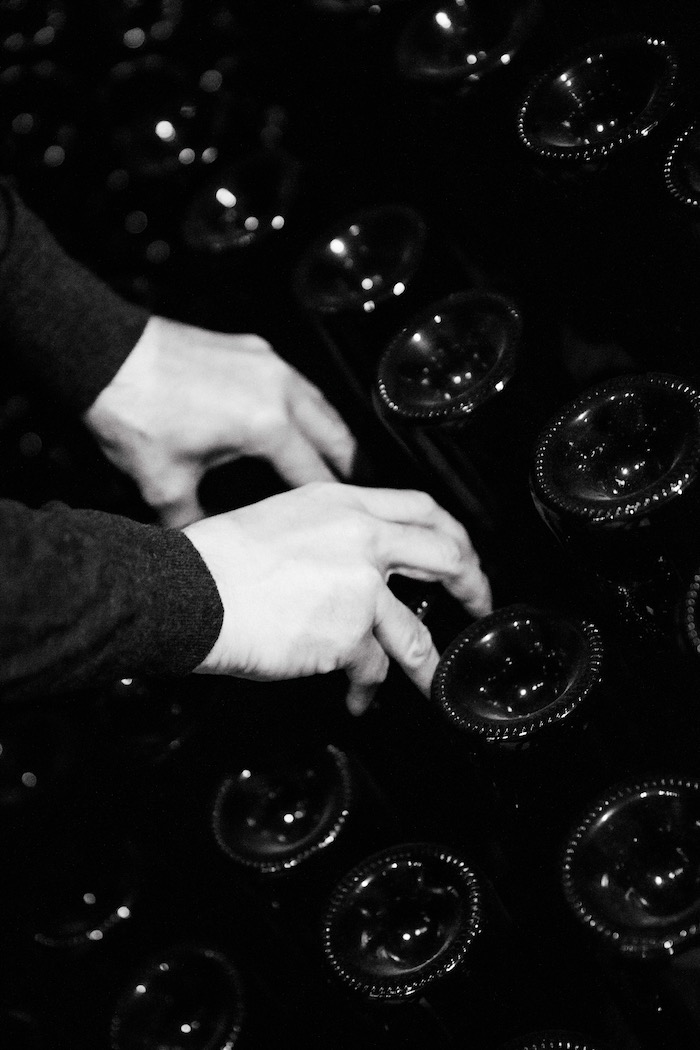 在陈化的过程中,“转瓶”是一个非常关键的步骤,玳慕香槟放弃了较为省时的机器转瓶,转而选择了更加费时却更有利于酒液品质的人工转瓶。酿酒大师们对数万瓶的原酒进行25轮左右的转瓶,这个过程将耗费他们4-6周的时间。