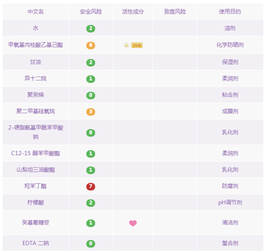 从成分表来看,这款防晒喷雾的主要成分是甲氧基肉桂酸乙基己酯,这是一种化学防晒剂,它是一种渗透促进剂,很容易被皮肤吸收。此外,它含有7种防腐剂,敏感肌、孕妇和儿童不宜使用。