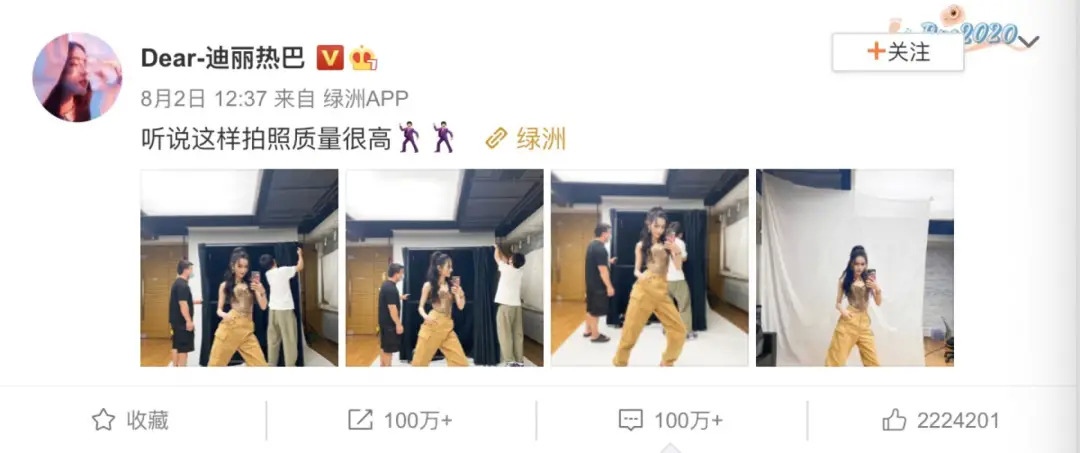 迪丽热巴模仿“人类高质量拍照” 来源 / 微博截图