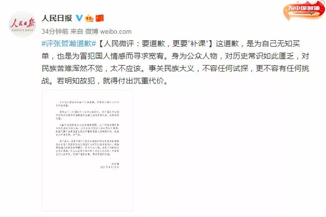 和吴亦凡相比,虽然张哲瀚并没有直接触犯法律,但一连串涉及伤害民族情感的行为被曝光后,张哲瀚被抛弃地同样决绝。