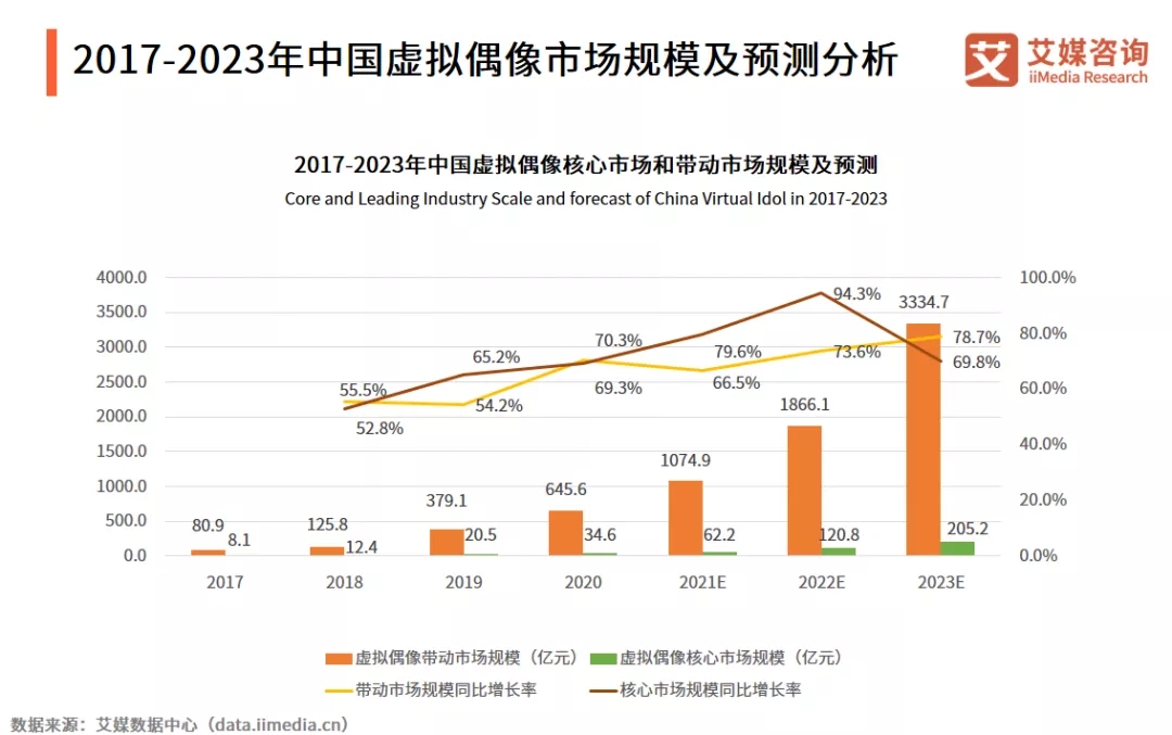 虚拟偶像的确巨大的发展潜力和市场空间,根据艾媒咨询发布的《2021中国虚拟偶像杨和发展及网民调查研究报告》显示,2020年中国虚拟偶像核心产业规模微博3.6亿元,同比增长70.3%,预计2021年将达到62.2亿元。但或许更有可能是一种娱乐方式的补充。