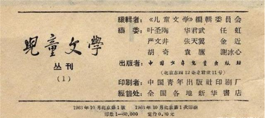 在1963年之前,国内都没有专门的儿童刊物,根据公开资料显示,当时全国只有两家专门出版童话的出版社。1963年,叶圣陶、冰心等作家逐渐意识到国内儿童刊物的落寞现状,在北京创办了《儿童文学》。