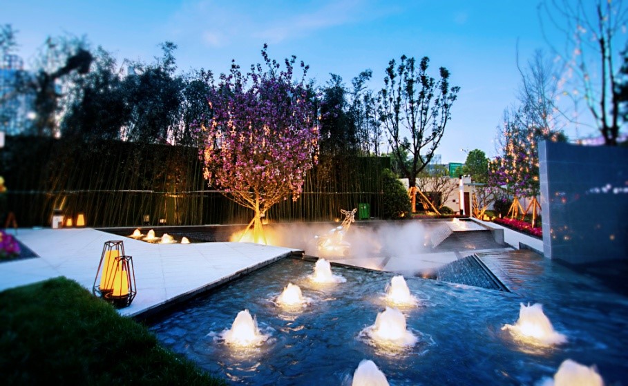 在园林景观设计中,遂宁·敏捷锦绣源著将遂宁文化完美融入了现代设计元素,高标准的园林空间配置,呈现独特的社区美感。入口处层层叠叠的迎宾水景,虚幻朦胧,营造出空间氛围感,惬意的都市慢生活从容而出。