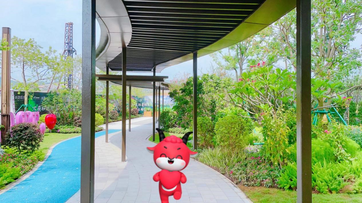 在欣赏完园林风光后,敏羊羊来到匠心营造的全龄运动社区,这里蕴藏景观会客厅、儿童乐园、长者健身花园、青年球场、近600米跑道等,打造出能让身心皈依的健康场所,让全龄人群在趣味互动中亲近自然,疗愈身心。看,敏羊羊踩着滑板,正玩得不亦乐乎。