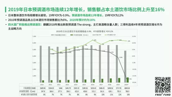在日本整体酒类市场疲软、不再增长,且啤酒业处于从成熟到衰退状态的情况下,预调酒是唯一实现连续12年增长的品类。(来源:峰瑞资本)