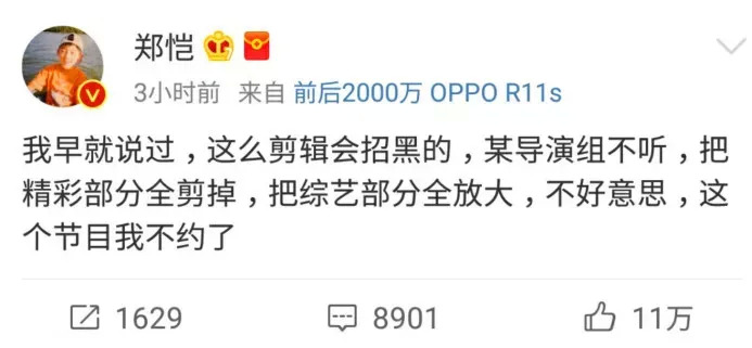 如果在话语权地位不对等、艺人声誉遭实质损害前提下,艺人通过发声造舆论去维权,犀牛君是极力赞成的;但多数时候,艺人针对节目组剪辑的开撕都不是明智之举。