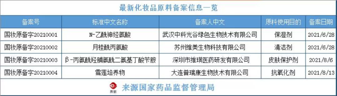 今日(8月24日),国家药监局官网公布了新原料备案信息,“003号”和“004号”化妆品新原料正式亮相。而值得注意的是,截至目前,已备案成功的4个新原料都来自国内企业,这给国内原料企业带来了充足的信心,更意味着国产化妆品原料及化妆品产业进入了自主创新的全新发展阶段。
