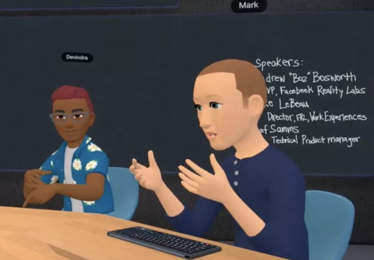 上周,Facebook正式推出了这款“炸场”的VR会议软件,让整个元宇宙圈都为之一振,在各大社交媒体上瞬间刷屏。这个功能的特点在于,允许用户用自己的虚拟分身与其他人在同一个虚拟空间中进行协作,创造了全新的沉浸式会议体验。