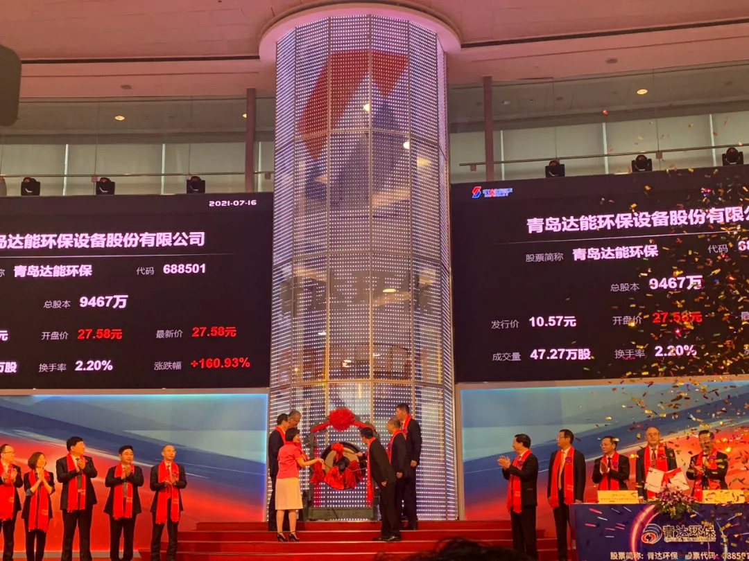 7月16日,青达环保成功上市成为青岛第52家A股上市公司,也是第4家登陆上交所科创板的青岛上市公司。