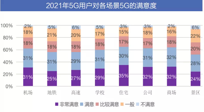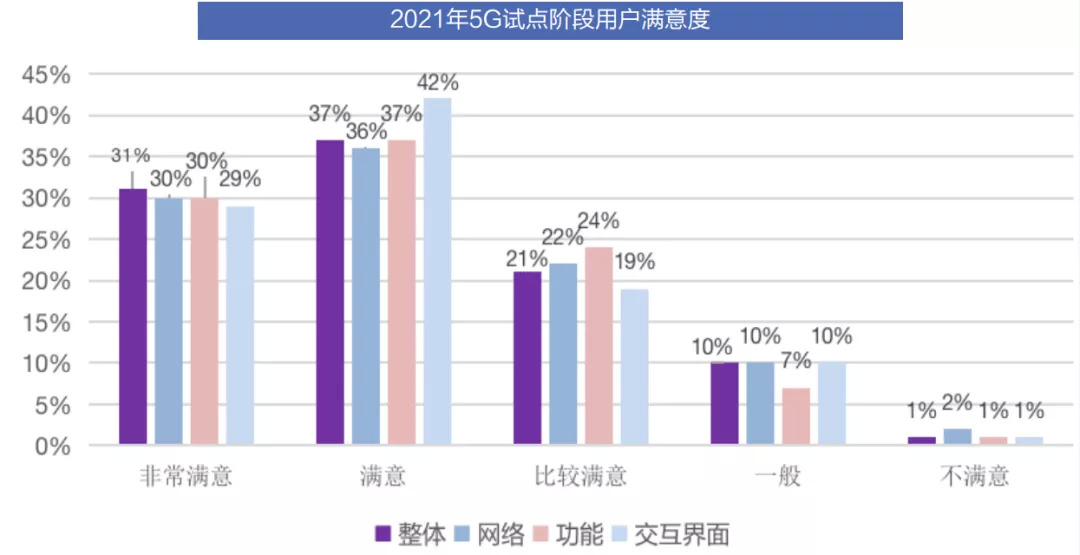 根据中国移动调研显示:从各细分维度的满意度来看,中国移动5G试点地区用户感知“不满意”的用户占比小于3%,感知“满意”(包括非常满意、满意和比较满意)的用户占比接近90%。