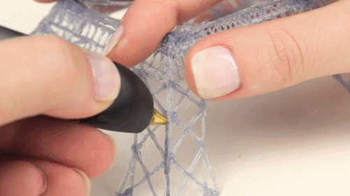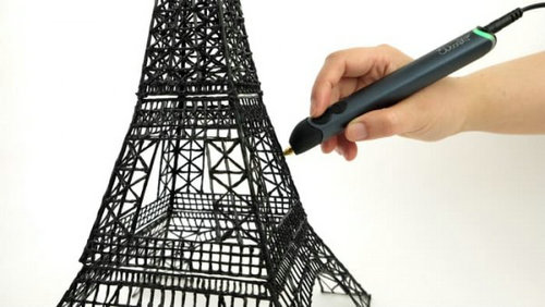 这款由Wobbleworks公司出品的3D打印笔,利用基本的 3D 打印原理,将 ABS 塑料棒插入笔内加热融化,然后从喷嘴挤出塑料线,只要发挥你的想象力,就可以将线条堆叠组合成各种有趣的立体实物。