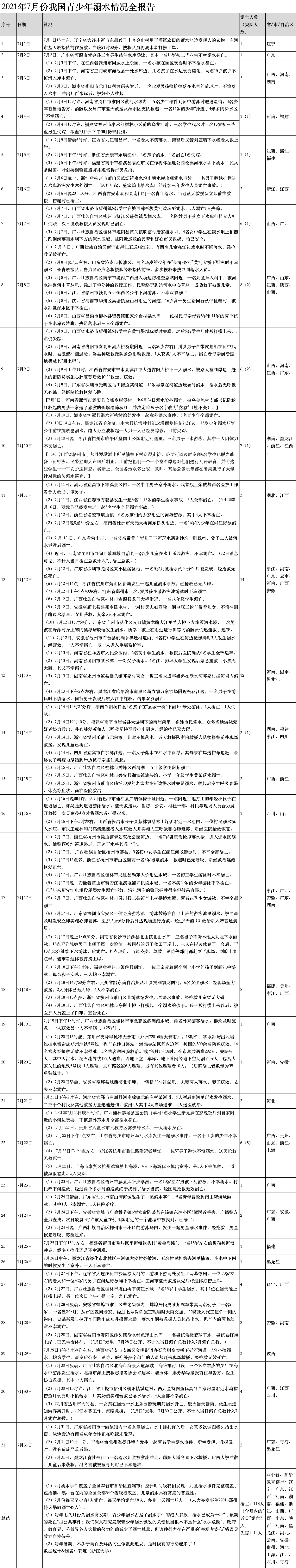 进入暑期以来,全国各地青少年特别是学生溺水事件频发,给全社会带来较大的负面影响。7月22日,广西桂林3名小学生兄妹溺亡;7月13日,河南驻马店6名儿童溺水身亡;7月10日,哈尔滨木兰县2名学生溺水一人死亡;7月7日,山西永济6名学生溺亡……