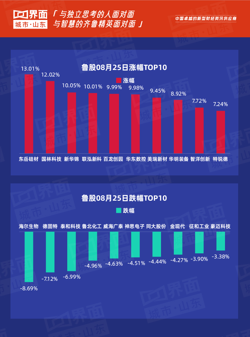 8月25日,山东164股上涨,76股下跌,11股持平。