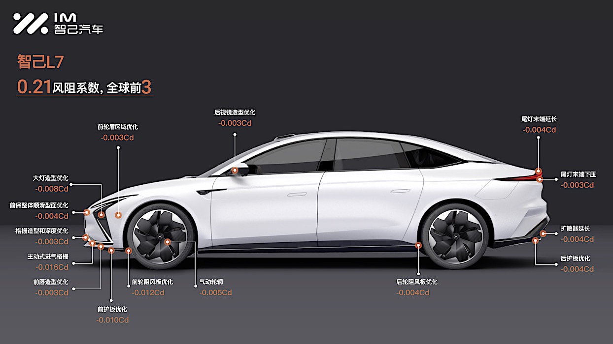 此外,智己L7大量采用空气动力学部件,以优化其风阻表现。