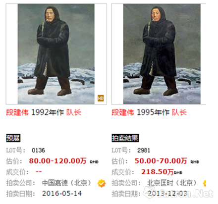 一些长期被忽视与边缘化的优秀艺术家被逐渐发掘,段建伟正是这样一位专注于画作的画家,其作品无论是在艺术学术上的高度,还是艺术市场上的成熟度,都得到了业界的广泛认可。此次上拍的 《队长》,描绘了一个乡村领队的神色鲜活毕现,那红亮的神色中透射着威严,那叨在嘴上燃着的香烟显露着一种自信的神气,旷野静寂,雪落有声,毛线鞋平稳而柔软,在静谧的氛围中呈现出队长的果敢决断,给这些平凡的中原农民身上赋予了一种庄重的纯真憨厚之感。在《段建伟:画坛老炮儿 拍场新势力》中分析,段建伟的拍卖市场在近三年表现良好,在他的拍卖作品高价TOP20中有15件作品成交于2014、2015年,逐渐成长为拍场的一股新势力,统计他的拍卖数据发现,他的作品在拍场的估价呈现逐年上涨的趋势。
