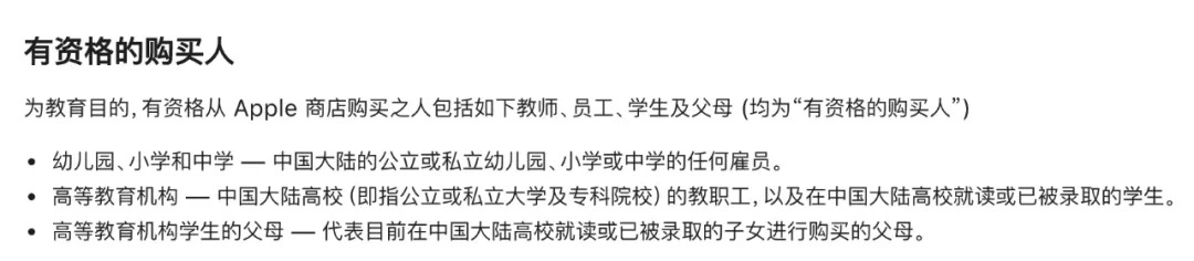 众所周知,苹果的教育优惠只针对以下几类人群