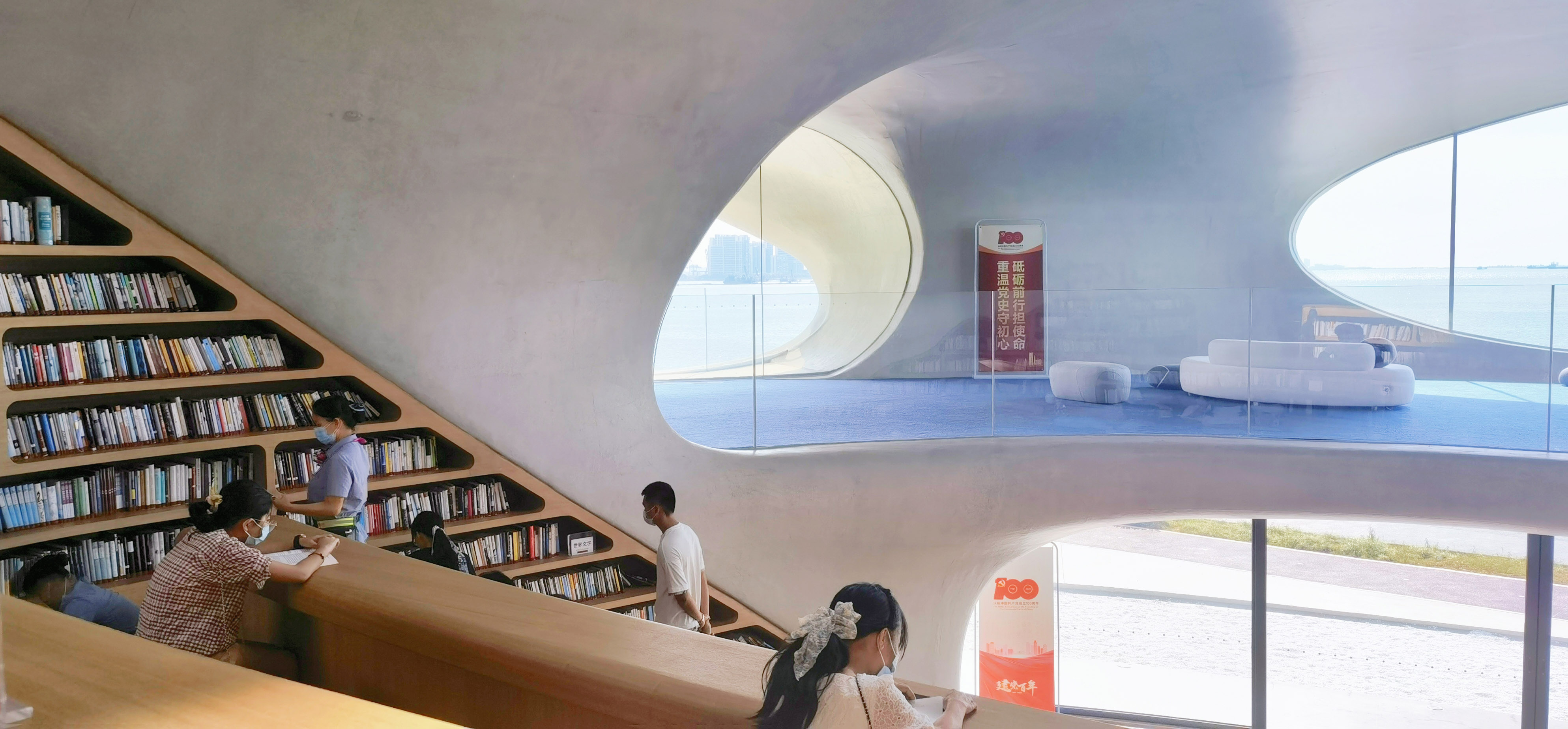 云洞图书馆地处海口湾畔的世纪公园,是一个复合图书馆和滨海步道驿站功能的城市公共艺术空间。